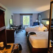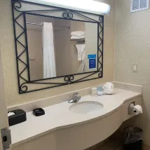 나는 방에 그렇게 많은 불편함을 느낀 호텔에 묵어 본 적이 없습니다. 머리 위 조명도 없고 조명도 매우 어둡습니다. 게다가 화장거울이 없어 화장을 하면서 얼굴을 보는 것도 전혀 불가능하다. 비누와 수건은 같은 상자에 담겨 있습니다. 싱크대 수도꼭지가 너무 꽉 조여서 들어올릴 수가 없었습니다. 샤워기 헤드에서 여기저기 물이 뿜어져 나왔지만 몸에는 닿지 않았습니다. 샤워를 하고 난 뒤에도 수도꼭지가 잘 닫히지 않아 물이 계속 새어나왔습니다. 샤워실에서 5m 떨어진 곳에 목욕 수건을 놓으십시오. 커튼은 완전히 내려질 수 없고, 창문에는 여전히 덮을 수 없는 넓은 부분이 있습니다. 약간의 지능을 가진 사람이라면 누구도 이런 방을 디자인하지 않을 것입니다. 하지만 힐튼 가든 인은 너무나 반인간적일 수 있습니다. 정말 큰 마음입니다!