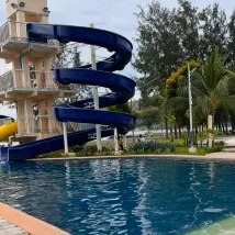 Nice place to enjoy family occasions. 3 swimming pools are lot of fun. Infinity, slide and wave pool. All of it are beside the view of the beach.