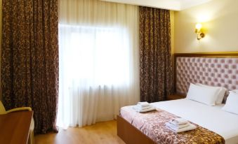 The rooms are equipped with air conditioning, a desk, a kettle, a refrigerator, a safe, a flat—screen TV, a balcony and a private bathroom with a shower. Bed linen and towels are provided at the hotel.