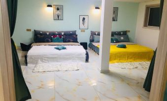 더블침대 1개 및 다다미 1개 및 퀸침대 3개