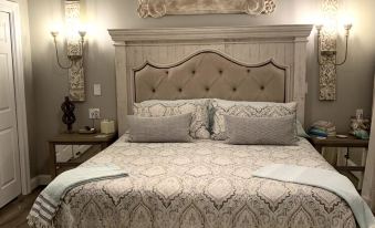 The luxurious master suite located on the second floor includes a king bed, an ensuite private bathroom and a great view of the lake. The lavish master bath provides a walk-in tile dual head shower adds spa-like body sprays and invigorating shower head, plus a separate 12' waterfall shower head. Also, a garden tub sits features lake views from corner windows, and plenty of counter space via the spacious his and hers vanity.