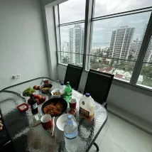 이번에는 27층 도시 전망의 방을 배정받았습니다. 전망이 정말 아름다웠습니다! 주방, 욕실, 거실 모두 잘 꾸며져 있었습니다. 다만, 바닥부터 천장까지 이어지는 창문은 바람이 세게 불면 휘파람 소리가 날 수 있으니 보강이 필요해 보입니다.