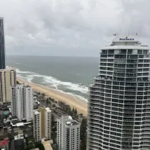호텔은 골드코스트 해안선 전체를 조망할 수 있는 높은 층에 위치해 있어 위치가 정말 좋습니다. 정말 아름다운 경치를 자랑합니다! 👍 특히 일출은 숨 막힐 듯 아름답습니다!