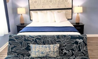 This is a fully remodeled spacious studio unit. Located upstairs, this open room features a comfortable queen bed and a futon for additional seating or sleeping space. The full bathroom includes a bathtub and comes stocked with bath towels, toilet paper, shampoo, conditioner, body wash, and hand soap for your convenience.