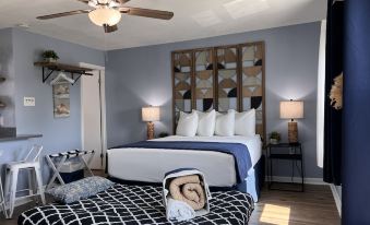 This is a fully remodeled spacious studio unit. Located upstairs, this open room features a comfortable queen bed and a futon for additional seating or sleeping space. The full bathroom includes a bathtub and comes stocked with bath towels, toilet paper, shampoo, conditioner, body wash, and hand soap for your convenience.