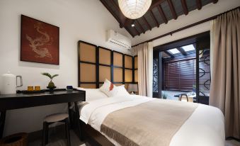 Pushing open the wooden door, it feels as if you have traveled back a hundred years. The blue bricks, black tiles, carved window lattices, and bamboo shadows in the courtyard, every detail is a mark of dialogue with the ancients. In the morning, open the window and the wind chimes of the North Temple Pagoda will reach your ears; at dusk, lean on the railing and the moonlight on the white walls and the lamp shadows will form a painting. The guest rooms retain the old residence's features such as wooden doors, flowered windows, and wooden beam ceilings, while integrating modern comforts: high-end bedding, vintage furniture, and velvet sofas, infusing a modern and comfortable living philosophy into the classical setting. Within walking distance of the Humble Administrator's Garden, museums, and Pingjiang Road, yet enjoying the tranquility of the alleys, the elegance of the gardens and the warmth of the city life are just a door apart.