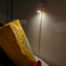 윗층 침대 위에는 차광막이 없어서 방 불을 켜자마자 윗층 침대가 바로 잠에서 깨어났습니다.