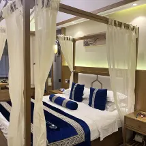 객실은 매우 깨끗했고, 이상한 냄새도 나지 않았으며 상쾌한 분위기였습니다. 작은 냉장고를 포함한 모든 편의 시설이 완비되어 있었습니다. 아기는 넓은 욕조를 좋아했는데, 너무 뜨거워서 밤에 몸을 담그고 나면 나오기 싫어했습니다. 아래층 프런트 데스크 직원들도 매우 친절했습니다. 교통은 졸정원, 핑장루, 사자림 정원과 매우 가까워 도보로 가까운 거리에 있습니다. 지하철역과도 가깝고 택시도 쉽게 이용할 수 있습니다. 전반적으로 매우 만족스러웠습니다.