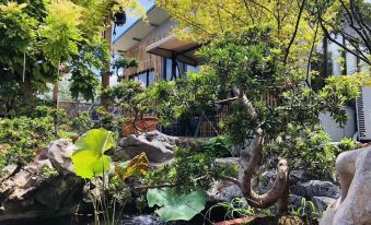 很有設計巧思的一家民宿,印象最深的事把無法移除的山石直接做成室內一景。有小泳池,適合娃戲水。有可以吸煙打麻將的茶室和無煙的休息區。飯菜比較可口,老闆還送了自釀的啤酒和老闆媽媽自己包的粽子,山楂味的啤酒清甜,肉粽非常香。房間風景很好,也比較舒適,空調的設計合理冷風不會吹到床。負責接送的小哥很熱情。希望改進的是浴室的手持蓬頭,衹有水霧模式而且背面開裂呲水,幸好頭頂淋浴頭還好用。另外有的客人睡得晚起得早,在樓下院子大聲説話比較影響睡眠,如果能提醒下就更好了。