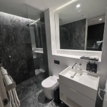 객실은 꽤 넓었고, 전반적인 스타일도 꽤 좋았습니다. 욕실도 조금 작긴 했지만, 디자인적으로는 마음에 들었습니다.
