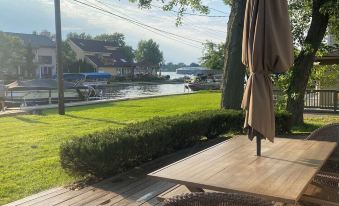 Relax in the sunshine on the large deck or the sun pods by the water.