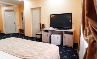 Заказали этот отель, потому что в других было все занято, или просто мрачные отзывы... и повезло. Отель выглядит лучше, чем на фото из Яндекс.Путешествия и номера ок. У нас было два номера - стандарт - без претензий вообще и люкс - тут вообще шикарно, можно было и на неделю остаться. От вокзала Сызрань-1 (поезд СПб-Самара) 7 минут и 150 руб. на такси. До Сызрань-Город (Ласточки до Самары) - 7 минут пешком. На Яндексе не было опции завтраков, но девушка на ресепшен быстренько достала меню и мы сразу заказали завтрак на завтра. До ужина хватило - каша, блинчики с мясом и так далее. Отель в тихом месте, а до местного кремля неторопливо 20 минут пешком. Кстати, когда говорили с гидом, та сказала, что если бы мы спросили ее рекомендации, она бы посоветовала именно этот отель. Ах да, холодильник, гладилка, место для курения - все есть