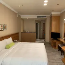 아마도 휴일이라 근처 레스토랑이 모두 문을 닫아서 원하는 것을 얻으려면 멀리 여행해야 할 수도 있습니다. 어쩌면 호텔이 환경 보호를 장려하므로 가격에 비해 방이 넓지만 공기가 좋지 않습니다. 컨디셔너가 별로 춥지 않아요 프런트 직원 태도는 좋으나 야시장과는 좀 거리가 있어요.