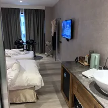 3인실은 작긴 했지만, 성인 두 명과 아이 한 명이 지내기에 딱 좋았습니다. 호텔 조식은 가짓수가 많지 않았지만, 적당했습니다. 호텔에 무료 족욕 서비스도 있어서 아주 좋았습니다.