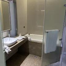 We got the last room. The shower door is missing and there is no hot water for the tap. However the filling of the bathtub water is fast so that you dont have to wait so long.