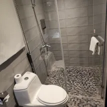 방은 넓고 깨끗합니다. 유일한 문제는 헤어드라이어의 바람이 너무 약해서 마르는 데 시간이 오래 걸린다는 것입니다.