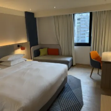 홀리데이 인 익스프레스는 타이베이 중앙역과 중산역 사이에 편리하게 위치해 있으며, 도보로 가까운 거리에 있습니다. 프런트 데스크 직원들은 친절했고, 객실은 넓고 깨끗했습니다. 조식은 최고는 아니었지만, 그럭저럭 괜찮았습니다. 저녁에는 닝샤 야시장까지 걸어서 편리하게 이동할 수 있습니다.