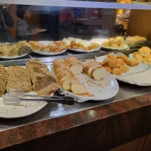 아침 식사 옵션은 많지 않지만 기본적인 죽과 빵은 제공됩니다.