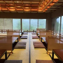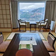 일본식 객실의 큰 창문도 멀리 있는 단풍 산을 향하고 있어 이번 여행 중 가장 아름다운 경치를 자랑하는 호텔이었습니다. 저녁 식사 중에는 직원분이 이불을 깔아주기도 했습니다.