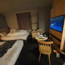 객실은 매우 넓고 편안했고, 바닥에 무료 음료와 간식이 준비되어 있었습니다. 다카야마역과 근처 야키니쿠 장톈궈와 가까워서 위치도 좋았고, 가성비도 훌륭했습니다. 세 식구가 지내기에도 넓고, 최신 시설과 좋은 하드웨어도 갖춰져 있었습니다. 다만 이불이 너무 두꺼웠다는 점이 아쉬웠습니다.
