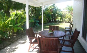 Lya’s offers a welcome respite from the great outdoors with a covered verandah and comfy high ceilinged living area with a modern kitchen. Both bedrooms have queen size beds (one can be split into two singles).There is also a queen size bed in the living room so extras beyond the usual 4 people are able to stay.Pedestal fans in every room will keep you cool in the balmy evenings and the fully screened home will ensure the mozzies don’t join you on vacation.