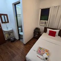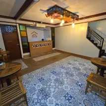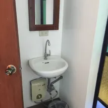 Hot water is available. Water dispenser is available to refill, AC is good. Bed is comfy. Location is good. Bus stop directly outside going to tanauan city . The only down side is floor is dirty