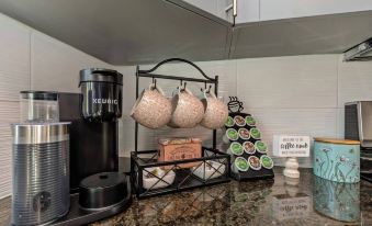 The house is beautifully decorated. The kitchen is fully equipped. The beds were comfortable. The location is convenient. The Ms. PAC-man machine was a big hit. Only negative is the bathrooms didn’t have space for your toiletries.