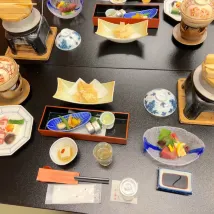 매우 좋은 호텔과 훌륭한 음식! (PS: 모든 것이 훌륭하고 하나씩 제공됩니다. 식사가 끝났다고 생각할 때마다 작은 수프와 스낵이 추가로 제공되었지만 결국 우리는 배를 채웠습니다.) 다다미 방도 매우 편안했습니다. 가지 않았지만 문앞의 온천을 파기 위해 크고 작은 구덩이를 모두 시도해 보았는데, 깊고 작은 구덩이의 물은 더 뜨겁고 크고 얕은 구덩이의 물은 더 차갑습니다. 추신: 구마노 고도는 정말 아름답습니다!