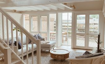The 2-storey apartment has been beautifully furnished for a relaxing and comfortable stay. Upstairs has 2 bedrooms, with one king bed and one queen bed both with natural cotton and linen bedding. The bathroom features a large rose shower head and environmentally sustainable shampoo, conditioner, body wash and soap complimentary. Also located upstairs is a toilet and laundry. The open layout downstairs includes a large kitchen with induction cooktop, dishwasher, microwave, coffee machine, kettle, fridge, toaster and large breakfast bar area. Organic teas, milk, eggs, butter, sugar, locally made sourdough bread and coffee are provided complimentary. The dining area comfortably hosts 4 people and the lounge area comes with a large flat screen TV, Apple TV and complimentary WIFI so you can stream from your computer. There is also a desk. The second and newly renovated toilet is located downstairs. There are two private outdoor areas, one under cover for inclement weather and the other perfect for warm and sunny days. The apartment is strictly no smoking inside.