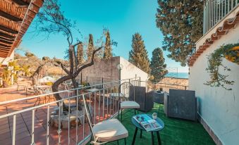 Lo bueno: • La ubicación es adecuada dependiendo del objetivo de la visita a Taormina. Se encuentra cerca de la playa y algo alejado de la ciudad. Cerca se encuentra el Teleférico Taormina Mazzarò, si funciona no será un inconveniente • Tiene salida directa a la playa por una larga escalera • La habitación era pequeña (aclaro que contratamos la habitación doble pequeña)(apartamento N°11), ubicada en un edificio en la zona de los jardines (entiendo que todas las habitaciones son diferentes). Tenía frigobar, pava eléctrica con café y té, un escritorio con silla, aire acondicionado, pequeña TV, tabla de planchado. • El baño era amplio, sin bañera • Excelente desayuno buffet, servido en una hermosa terraza al aire libre. Cada habitación tiene asignada una mesa. Frutas variadas, buenos productos de panadería, jugos, frutas secas, quesos, fiambres variados, huevos, verduras asadas, etc. • Cuenta con estacionamiento pago (15 euros el día). Puede estacionar fuera del hotel en espacios limitados sin costo alguno. Para tener en cuenta: • Al estar en un jardín, el acceso es al aire libre, tener en cuenta en momentos de clima muy adverso. • La habitación no tiene placard, solo un mueble con perchas. Si decide una estadía larga, puede ser una incomodidad. • Si no funciona el Teleférico Taormina Mazzarò (fue nuestro caso), deberá trasladarse a la ciudad con auto o algún otro medio