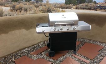 The guest house was recently built using the traditional adobe bricks. Tall ceilings, concrete floor, granite counter tops, and great views through good sized windows. You will have the experience of living in Taos. The house contains all appliances, a hot tub, fast speed internet, dish network, and a gas grill. The location is between the town and the ski valley. It is excellent for skiers because you do not have to drive through town to get there. About pets:No pets allowed.About checkOut:Check out before 11:00 AM.About children:Children allowed: ages 0-17.About checkIn:Check in after 3:30 PM.About smoking:Smoking is not permitted.About events:No events allowed.