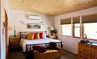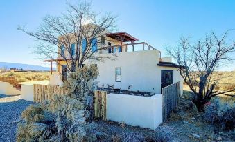 Entire house with nobody else onsite. Located between downtown Taos and Taos Ski Valley (TSV). Sits on Blueberry Hill with amazing 360° views. Less than 10 minutes to center plaza and only 25 minutes to the base of TSV. A rare two-story house featuring a large upstairs deck, perfect for birdwatching, listening to coyotes, and viewing stars. The spiral staircase may not be suitable for all. This was once the home of Ray Vinella, one of the original Taos 6 artists.About pets:Pets allowed: dogs (limit 2 total).About checkOut:Check out before 10:00 AM.About children:Children allowed: ages 0-17.About checkIn:Check in after 4:00 PM.About smoking:Smoking is not permitted.About minBookingAge:Minimum age to rent: 21.About events:No events allowed.
