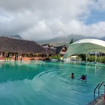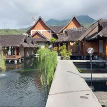 이곳은 물 위에 지어진 마을을 재현해 놓은 것 같았습니다. 정말 재밌었어요. 수영장도 크고 좋았습니다. 낚시는 즐거웠지만, 물고기는 한 마리도 잡지 못했습니다. 하지만 직원분이 정말 친절하셔서 몇 마리 잡을 수 있도록 도와주셨습니다. 모든 손님이 생선을 굽거나 튀겨서 먹습니다. 리뷰에 이 부분은 언급된 적이 없었습니다. 덕분에 숙박에 큰 도움이 되었습니다. 이 호텔이 정말 마음에 듭니다. 가루트에 가면 다시 방문할 예정입니다.