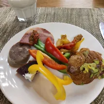 위치가 너무 외진 것 빼고는 다 좋았고 특히 조식은 중국 5성급 호텔과 맞먹을 정도였습니다. 체크인 첫날 조식은 정말 종류가 다양했어요. 그런데 4일 뒤에 체크인해보니 전혀 달랐어요. 종류가 원래의 5분의 1 정도인 경우가 거의 없는데 왜 이렇게 차이가 나는지 모르겠어요.