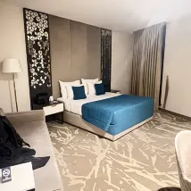 우선 단점을 말씀드리자면 밤 1시에 도착해서 침대를 열면 너무 더러웠는데, 이불을 열어보니 엄청 더러웠어요. 한 곳이 아니라 발 밑 부분 전체가 땅콩 껍질처럼 보였습니다. 이것은 용납할 수 없는 일이며, 시트와 이불을 교체하기 위해 이것은 단지 고립된 현상이라고 생각합니다. 호텔은 별로 좋지 않습니다. 옆집 사람들이 말하는 소리가 들립니다. 위치는 공항과 매우 가까우나, 관광지와는 조금 떨어져 있어 택시를 이용하기 매우 편리하므로 위치는 문제 없습니다.