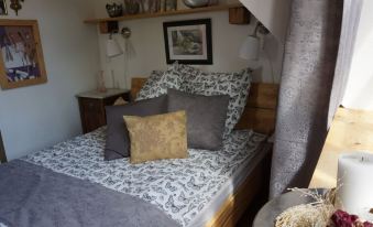 The beehive is an old clay building. During the basic renovation in 2020/21, the loam walls were fitted with a new loft and converted into an ideal vacation home according to ecological principles and with a great love of artistic design and detail.