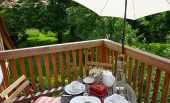 The apartment "Partheblick" (=Parthe View) in the newly renovated "Bienenstall" (=Beehive) of the Pfarrhof Dewitz has a stunning view of the Parthe flood plain. The view can be enjoyed from the sofa and dining table through the large gable window or from the balcony.