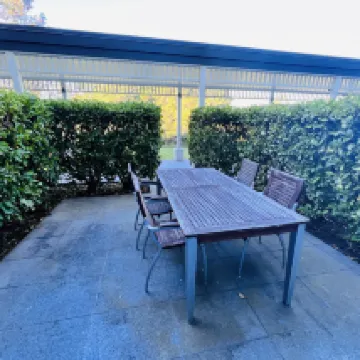 방은 깨끗하고 깔끔하며, 1층에 식탁이 있는 작은 야외 정원이 있습니다. 방에 가려면 4~5개의 방화문을 통과해야 합니다. . 주차장에는 주차공간이 넉넉합니다. 호수와도 꽤 멀고, 차를 타고 가야하고, 호수뷰도 없고, 레스토랑이 밀집되어 있는 곳에서도 꽤 멉니다.