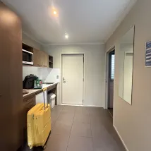 호텔 객실은 넓고 발코니와 간단한 식사를 조리할 수 있는 기본 주방 시설을 갖추고 있습니다. 큰 침대 2개는 매우 편안하고 욕실에는 욕조가 있습니다. 적극 추천합니다.
