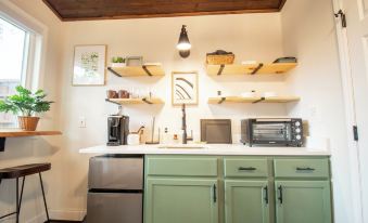 Escape to our cozy guest house studio, perfect for a romantic getaway or a solo retreat. Nestled in a serene setting, this intimate space features a comfortable queen bed, a fully equipped kitchenette, and a stylish bathroom.