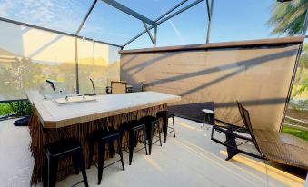 Private Heated pool with waterfall, hot tub, outdoor kitchen & grill, Tiki bar, indoor game room.