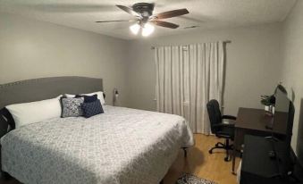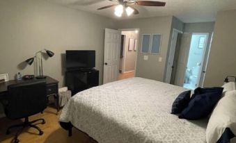 Spacious Second Floor Condo near downtown Thomasville & the Historic District. Features include laminate floors, central air, living room, primary bedroom with dedicated office space, fully stocked kitchen, dining area and an outdoor patio. Primary bedroom has 2 spacious closets, tv, king size bed. Just a short drive to shops & restaurants on Main Street.