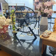 33층에 있는 회전식당은 맛은 좋지만 음식이 너무 느리게 나오네요. 세 가지 요리를 제공하는 데 1시간 30분이 걸렸습니다. 마지막 접시를 빨리 돌려주고 싶었는데 우리가 떠나기 전에 제공되었습니다. 딸이 먹고 싶어해서 돈을 내라고 했는데 계산원이 돈을 요구하지 않아서 너무 당황스러웠습니다.