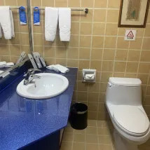 객실 유형은 작은 홀과 2개의 객실, 독립된 욕실을 갖춘 형태입니다. 창문이 매우 작아서 낮에는 불을 켜야 하지만, 방음이 매우 잘 되어 있어서 호텔 근처에 지하철이 건설되고 있지만 휴식에는 전혀 지장이 없습니다. 33층 회전식 레스토랑에서 바라보는 전망은 괜찮습니다. 에어컨은 없고, 방 온도는 26~27도이고, 이불은 있는데 한밤중에 더위 때문에 잠에서 깨어보니 얇은 이불이나 담요가 없었습니다. 프론트 데스크에 물어보니 창문을 열어도 된다고 대답하더군요. 하하! 한밤중에 얇은 이불을 배달해주신 웨이터님께 감사드립니다. 폴라 오션 파크에서 약 6km 떨어져 있습니다.