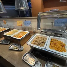 뷔페에는 옥수수 수프도 있는데, 친구들과 함께 맛있게 먹었어요.