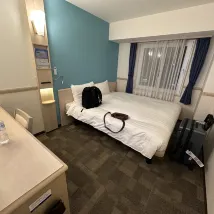 이번에는 킹사이즈 침대를 예약했는데, 침대가 두 개라 공간이 더 넓어진 것 같았어요. 제 캐리어도 침대 밑에 넣을 수 있어서 정말 편리했어요.