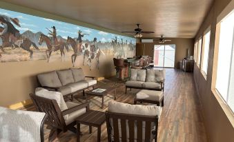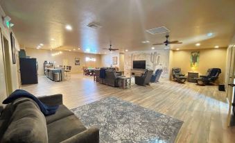 Arizona room has seating for up to 16 people. Living room seating up 14 people. Dining space for all. You are a couple blocks down the street from all the restaurants and action of Tombstone. Tombstone Zipline is just right out the door and a short walk to the real wild west Tombstone monthly Bull Riding. The great adventures of the ghost stories of the Birdcage one blook away. Lookout the best shopping of Tombstone is just down the street as well as all the gun fights.
