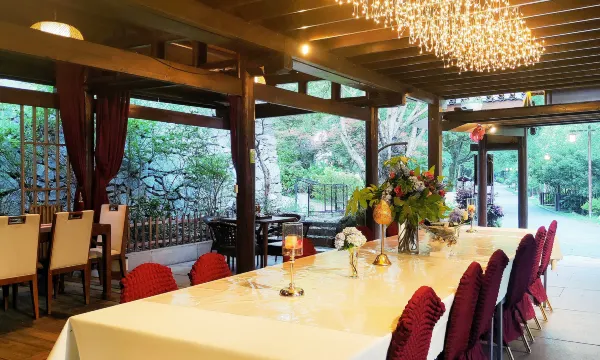 距離温泉很近,來往十分方便。民宿一樓可以圍爐煮茶,藤椅,木桌,花花草草,環境優美。