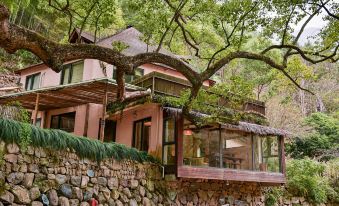 屋外景色蠻好的,有溪流,在千年大榕樹旁邊。但是屋裡麪非常潮濕,我老公對這個比較敏感所以一晚上都沒怎麼睡着,我也挺鬱悶的,第二天我們去爬山出一身汗才感覺好些。屋內實際應該沒有一百平,空氣中有股味道,我覺得被子也有點味道。總體體驗感不好,不值這個價。