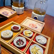 조식도 너무 맛있고 풍성했습니다. 로비에 향낭 만들어 보는 체험도 너무 좋았습니다. 배 차도 너무 맛있었어요. 족욕도 정말 좋았습니다.